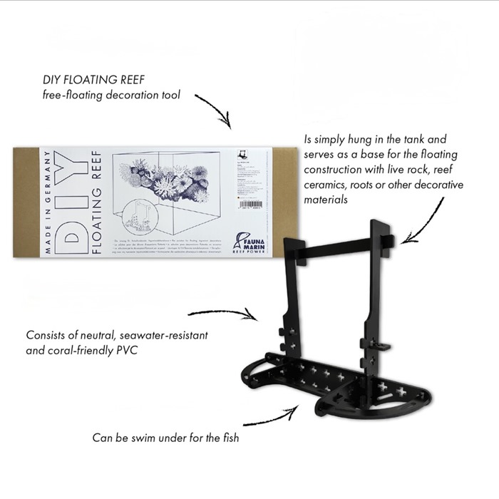 The Live Rock substrate remains free and the entire decoration can be swum under for the fish. The Fauna Marin DIY FLOATING REEF is simply hung in the tank and serves as a base for the floating construction with live rock, reef ceramics, roots or other decorative materials. It consists of neutral, seawater-resistant and coral-friendly PVC. Thanks to the innovative plug-in system, it can be easily installed by yourself and can also be individually expanded.