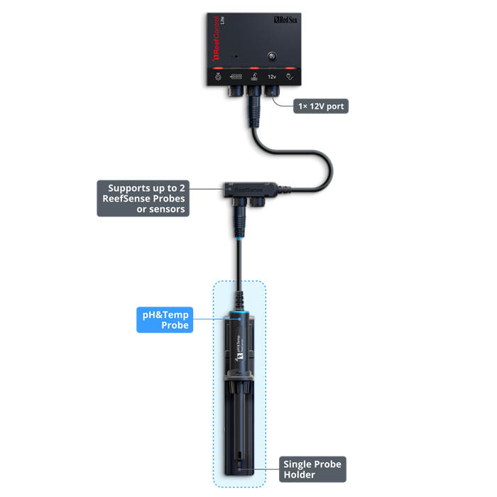 The ReefControl Lite - Comes with a pH & integrated Temperature Probe and a controller that can operate two Probes or Sensors, plus one 12V DC device that can be controlled from a ReefSense Probe or sensor (e.g., ATO pump, cooling fan).