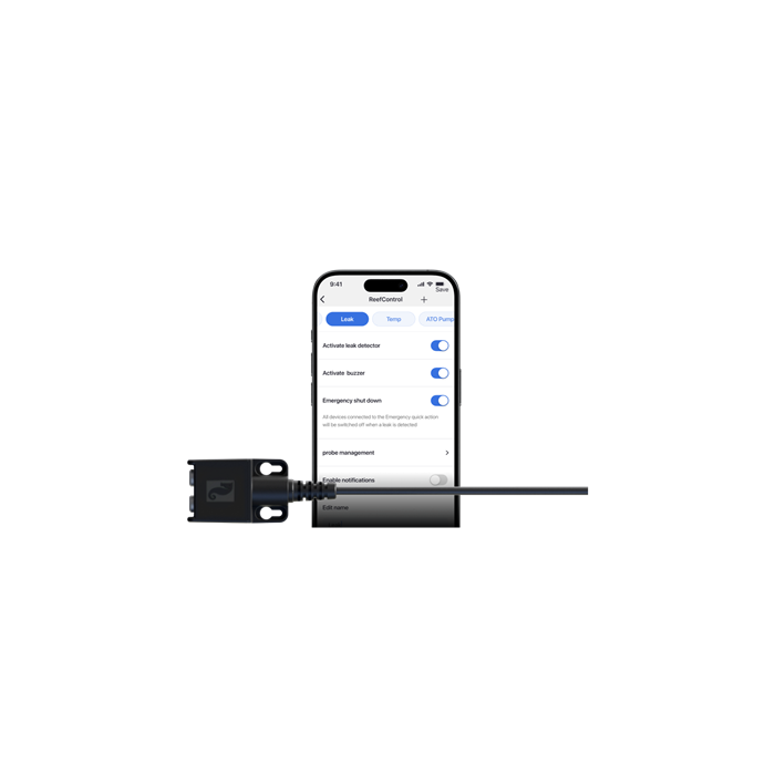 The ReefSense digital Leak Detector can be connected to the ReefControl Lite or Pro controllers and will reliably detect water spillage from RO to Seawater.