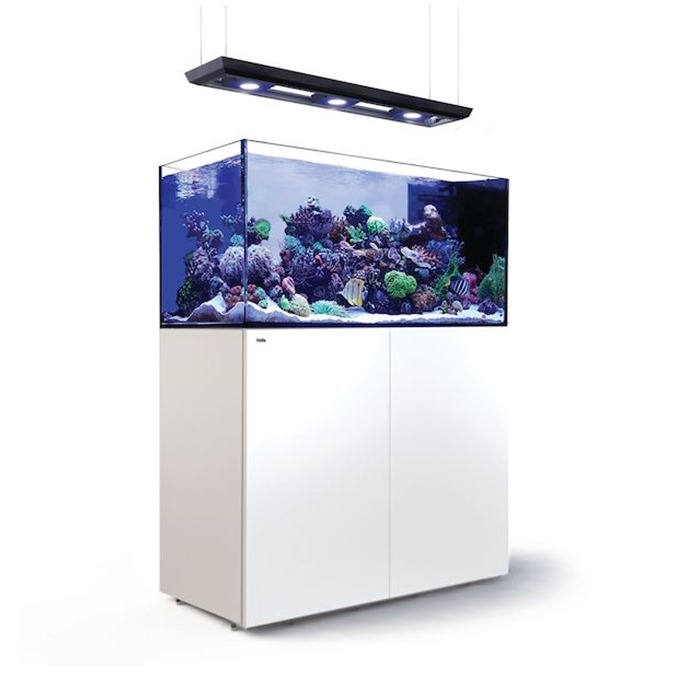 The REEFER Deluxe incorporates the all-new ReefLED lighting units with Red Sea’s custom mounting system into the REEFER reef ready systems in a convenient single package. At the heart of the ReefLED is a compact Led array that provides a reef-safe range of REEF-SPEC light through a single REEF-SPEC Blue (23,000 Kelvin) channel that consists of an optimum combination of ultraviolet, violet and blue LEDs and an 8,000 Kelvin white channel. In addition, it has a separate dedicated 3W Moonlight channel to provide the low levels of light for reef-safe nighttime viewing.The ReefLED includes a single optical-glass, hollow lens that creates a homogenous light, giving a dramatic coral coloration and a gentle shimmer throughout the aquarium.
