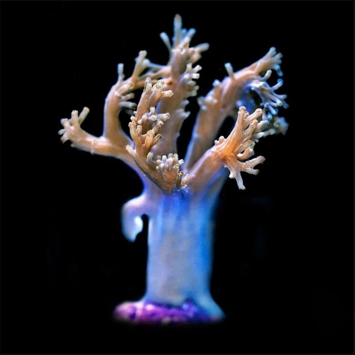 Like many colourful corals, the Blue Cespitularia hosts symbiotic zooxanthellae algae within its body. These algae provide the Blue Cespitularia with the majority of its nutritional requirements. However, the addition of zooplankton and other foods for filter feeders is beneficial and helps promote both health and colour development.